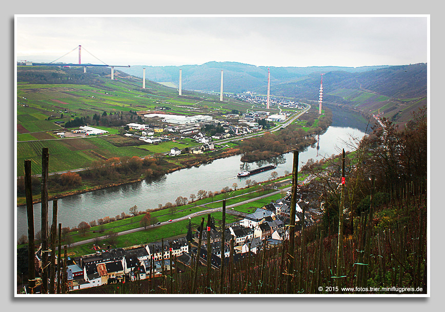 Zeltingen-Rachtig mit Sicht auf erste, sich im Bau befindliche Pfeiler