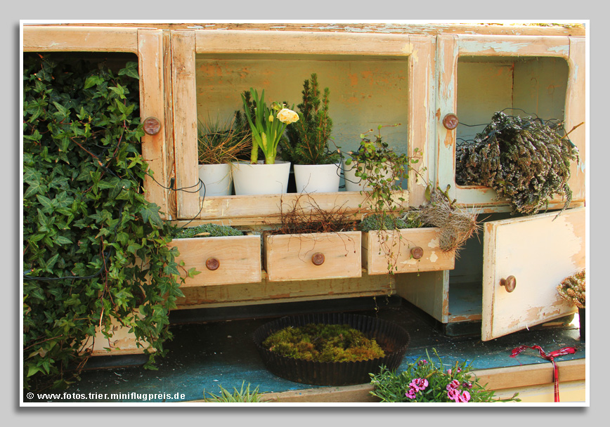 Deko auf der Terrasse beim Restaurant Reh in Gusterath-Thal am Ruwer-Hochwald-Radweg |