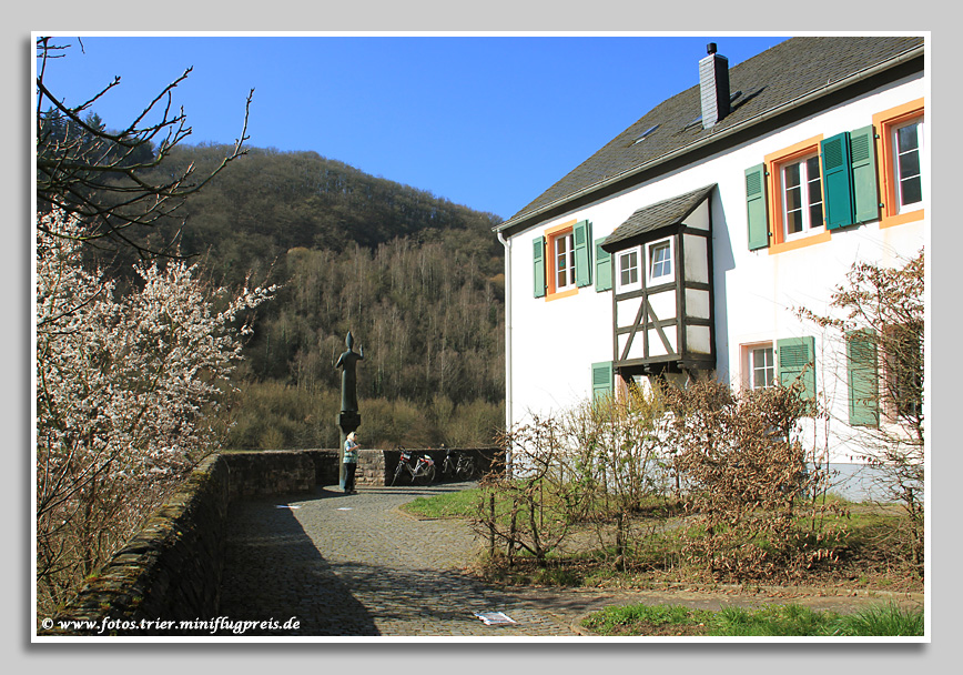 Radfahrer rasten gerne in Konz - Hamm bei der St. Nikolaus Statue vor dem Jugendhaus