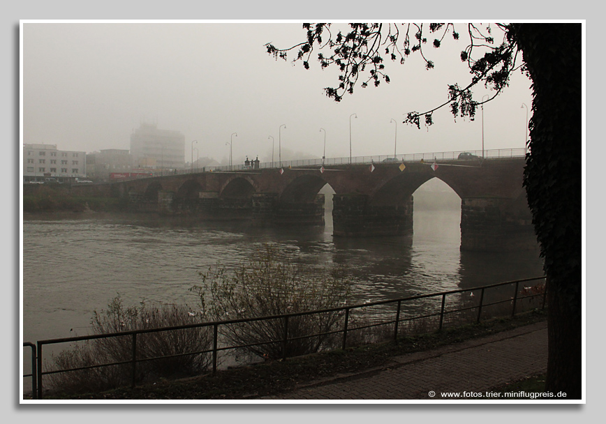 Die Römerbrücke in Trier an einem Tag im Dezember
